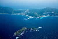 神津島、秩父山周辺より神津島村中心の街並、,神津島港(伊豆諸島)富士箱根伊豆国立公園