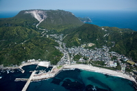神津島、神津島村中心の街並み,神津島港より天井山(伊豆諸島)富士箱根伊豆国立公園
