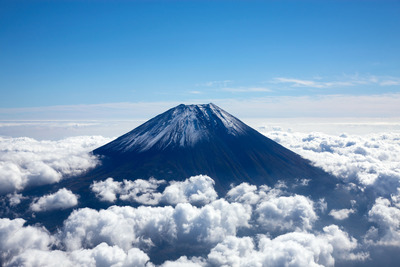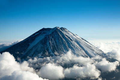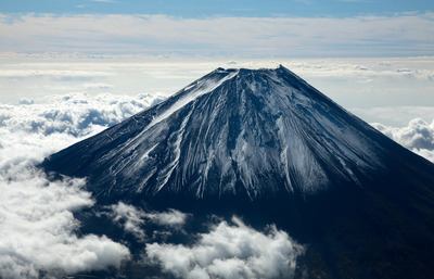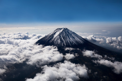 富士山、山頂付近(高度5,000m)より駿河湾と箱根方面世界遺産、日本百名山