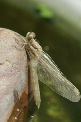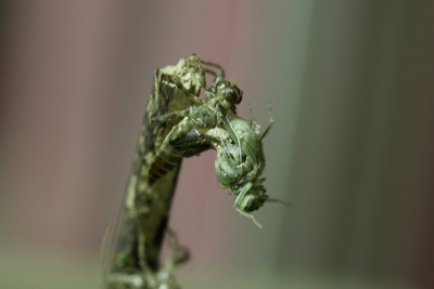 ナツアカネ 蛹の殻から抜け出す