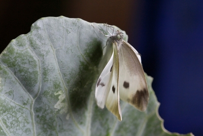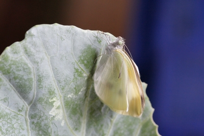 モンシロチョウ 葉の裏へ行く