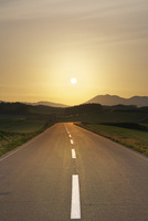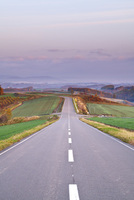 十勝岳連峰と日の出と朝の道