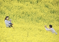 菜の花畑と家族