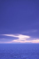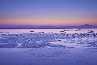 オホーツク海の流氷と知床連山の朝