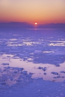 能取岬の日の出と流氷