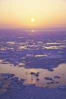 オホーツク海の朝と流氷