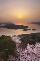 カレイ山展望公園の桜と鵜島の日の出