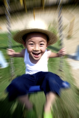 ブランコに乗る男児