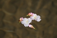 桜落花の流れとことじ灯籠・兼六園 さくら名所百選・名勝庭園
