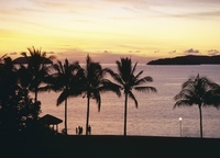 夕暮れの海とヤシの木のシルエット