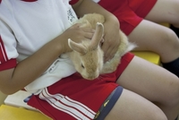 東武動物公園 ウサギを抱く園児