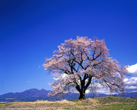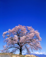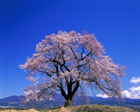 王仁塚の桜と八ヶ岳 樹齢約300年 エドヒガン