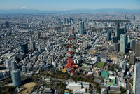東京タワー周辺より東京の街並みと富士山