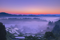 朝日と雲海の星峠の棚田
