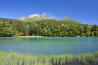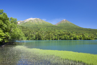 オンネトーと雌阿寒岳(左)と阿寒富士(右)