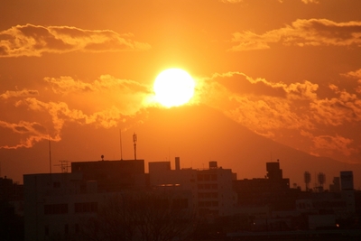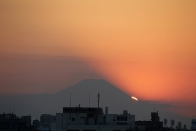 富士山に太陽が落ちる