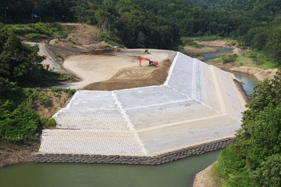 桂沢湖の湖岸工事