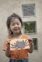 4歳女児 工作の紙細工を持つ