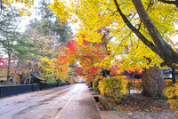 モミジの紅葉と道