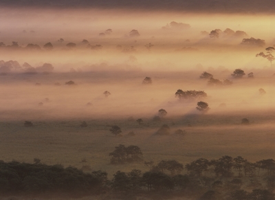朝日と霧の釧路湿原