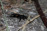 オニグモ類を狩るオオモンクロクモバチ