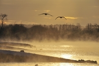 十勝川の夜明けと白鳥