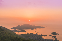 鞆ノ浦より瀬戸内海 燧灘の走島と島々朝焼け