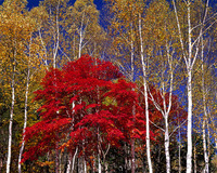 カエデの紅葉とシラカバ林。金山平にて