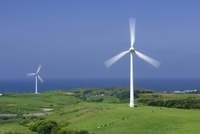 風力発電の風車と日本海