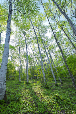 平庭高原の白樺林とニリンソウ