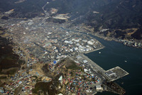 気仙沼市魚町付近と気仙沼湾