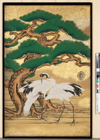 御常御殿 一の間 棚貼付 東面 中 紙本著色 松鶴図