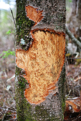 シカにより樹皮が食べられた木