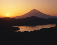 大観山から芦ノ湖と富士山と夕日