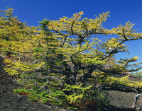 黄葉のカラマツ自然林。富士山御庭