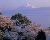 春の駿河湾と富士山朝景 大瀬崎付近