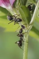 クロヤマアリ花外蜜腺をなめる