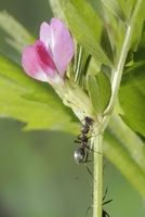 クロヤマアリ花外蜜腺をなめる