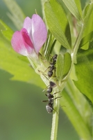 クロヤマアリ花外蜜腺をなめる