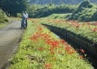 ヒガンバナを眺める老人親子