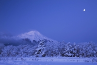 雪の里より富士山と月朝景