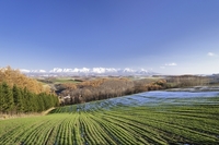 十勝岳連峰と秋まき小麦の畑