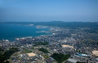 七尾駅と七尾市街地より七尾南湾