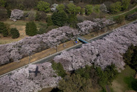 満開の桜の野川公園と東八道路周辺