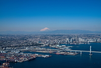 本牧ふ頭周辺より横浜港,横浜市街地,富士山