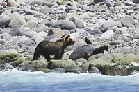 ヒグマの親子と海