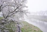 夏井千本桜と朝霧