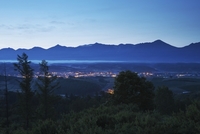 十勝岳連峰の朝と上富良野市街地