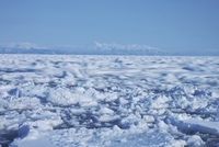 知床連山と野付半島の流れて動く流氷