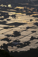 医王山より望む砺波平野の散居村の朝